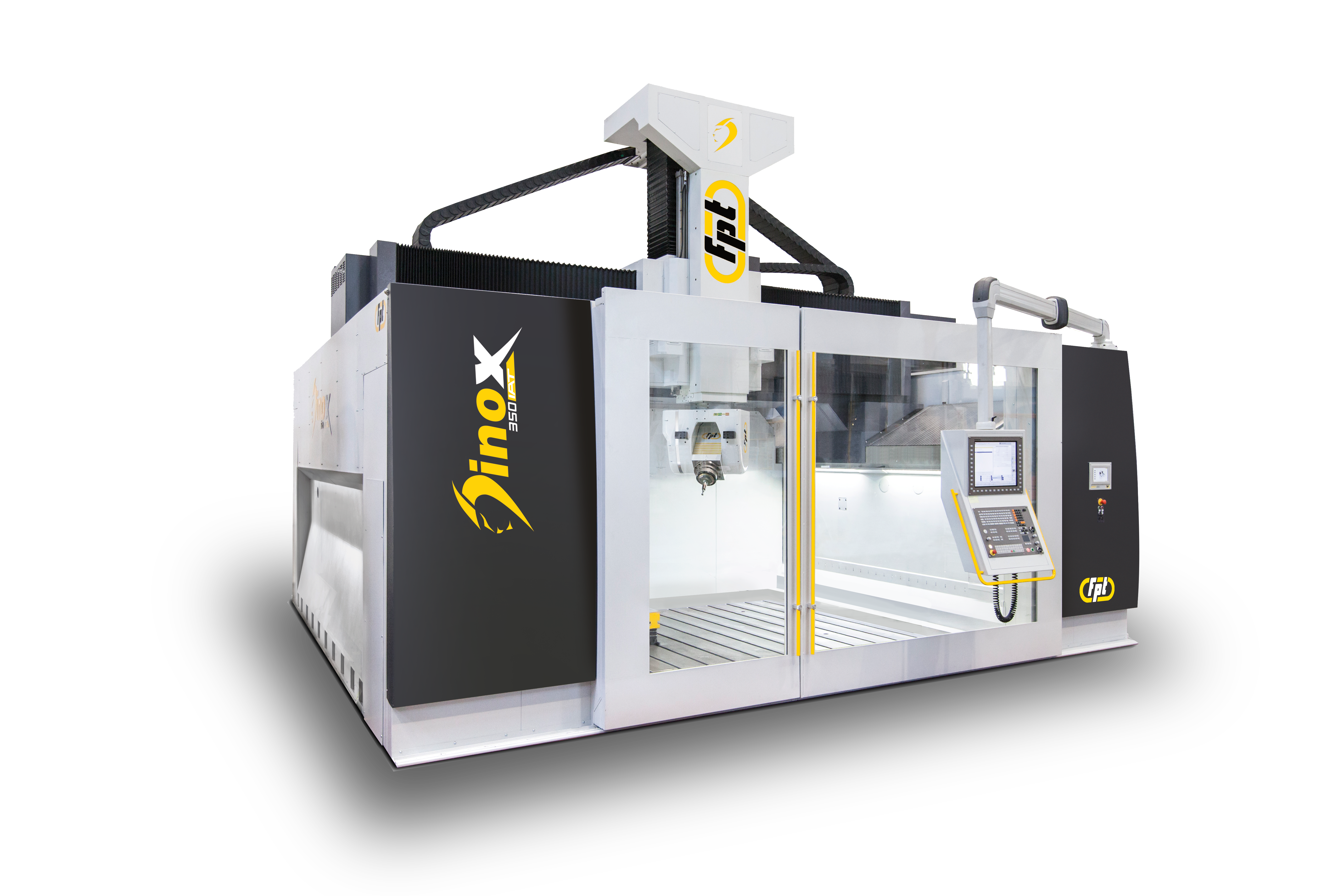 The FPT Dinox 350 IAT is a large-format vertical milling machine designed for 5-axis precision machining of oversized components. Featuring a gantry-type moving crossbeam architecture, the Dinox 350 IAT combines heavy-duty rigidity with high-speed performance, making it equally effective in roughing and finishing operations. Its IAT – Intelligent Active Thermal control system ensures dimensional stability by compensating for environmental and operational temperature variations. Ideal For |