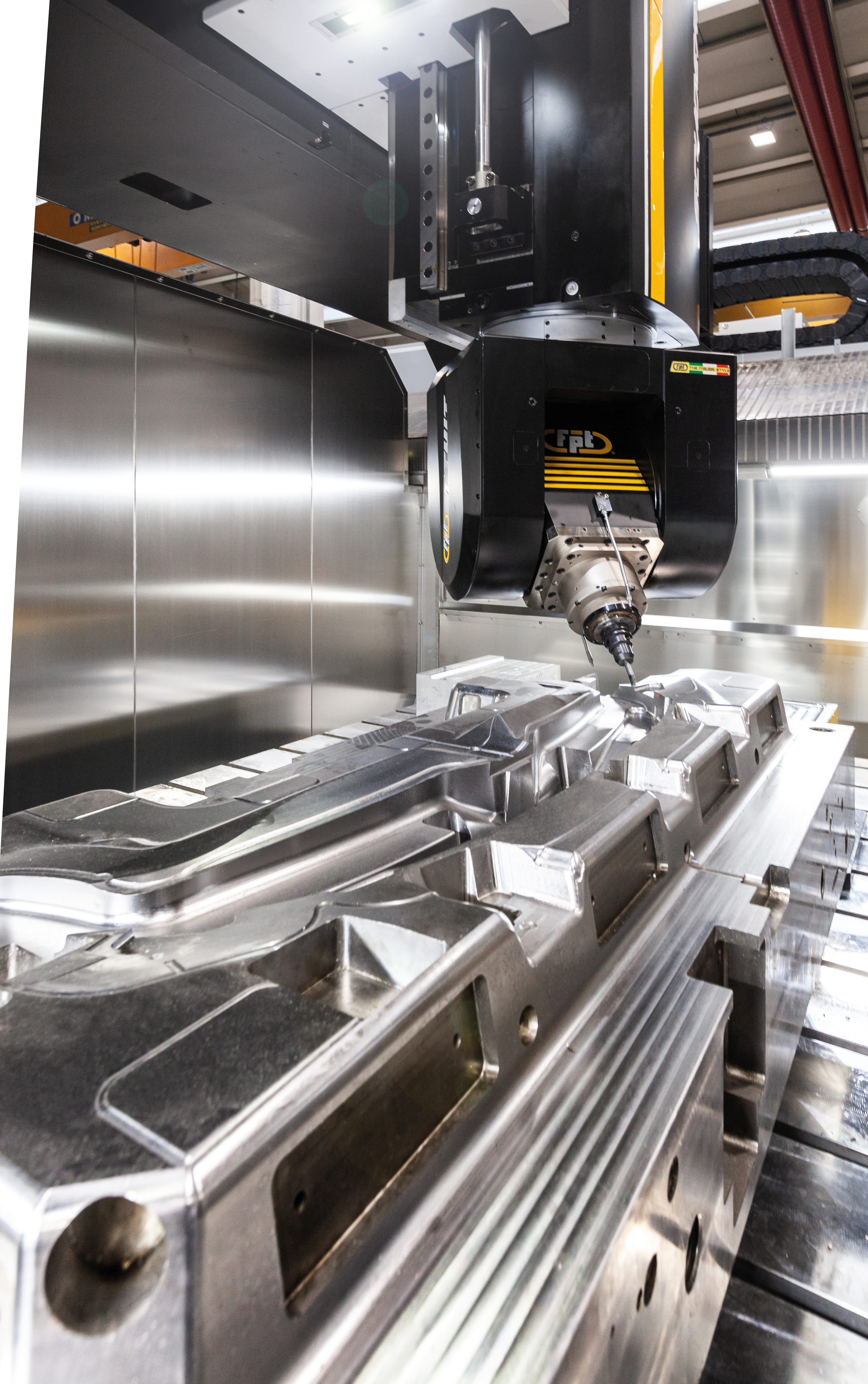 Scuderia is a state-of-the-art 5-axis vertical milling machine built to deliver absolute precision and performance in large-part machining. Its advanced gantry architecture and FEM-optimized cast-iron structures ensure maximum rigidity, while the integrated IAT – Intelligent Active Thermal control system eliminates thermal expansion errors by actively compensating for temperature variations during machining. Ideal For |