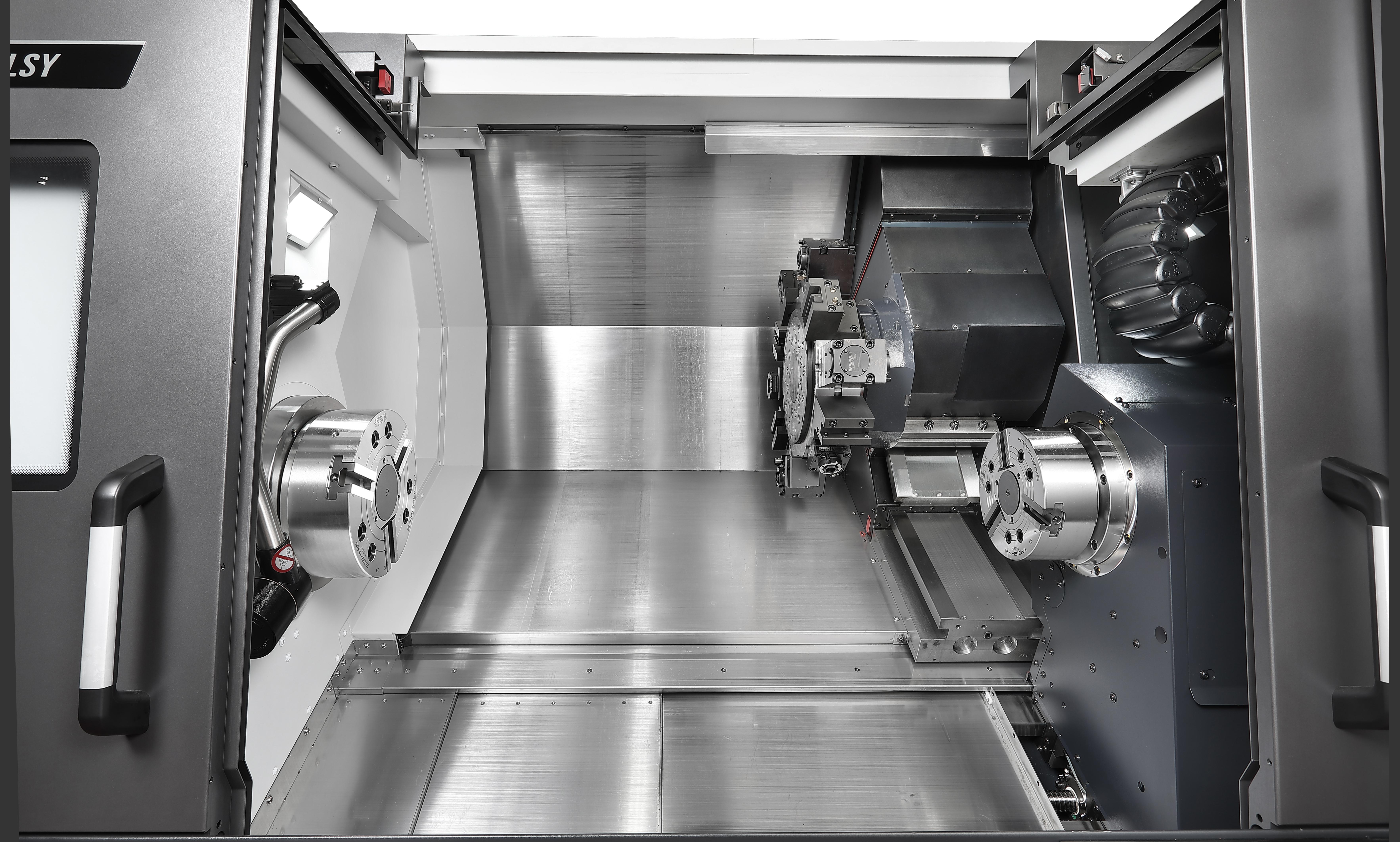 - Mångsidiga konfigurationer: Modellprogrammet erbjuder allt i från 2-axliga svarvar med dubbdocka till maskiner med roterande verktyg, Y-axel och subspindel, vilket tillgodoser ett brett utbud av bearbetningsbehov.