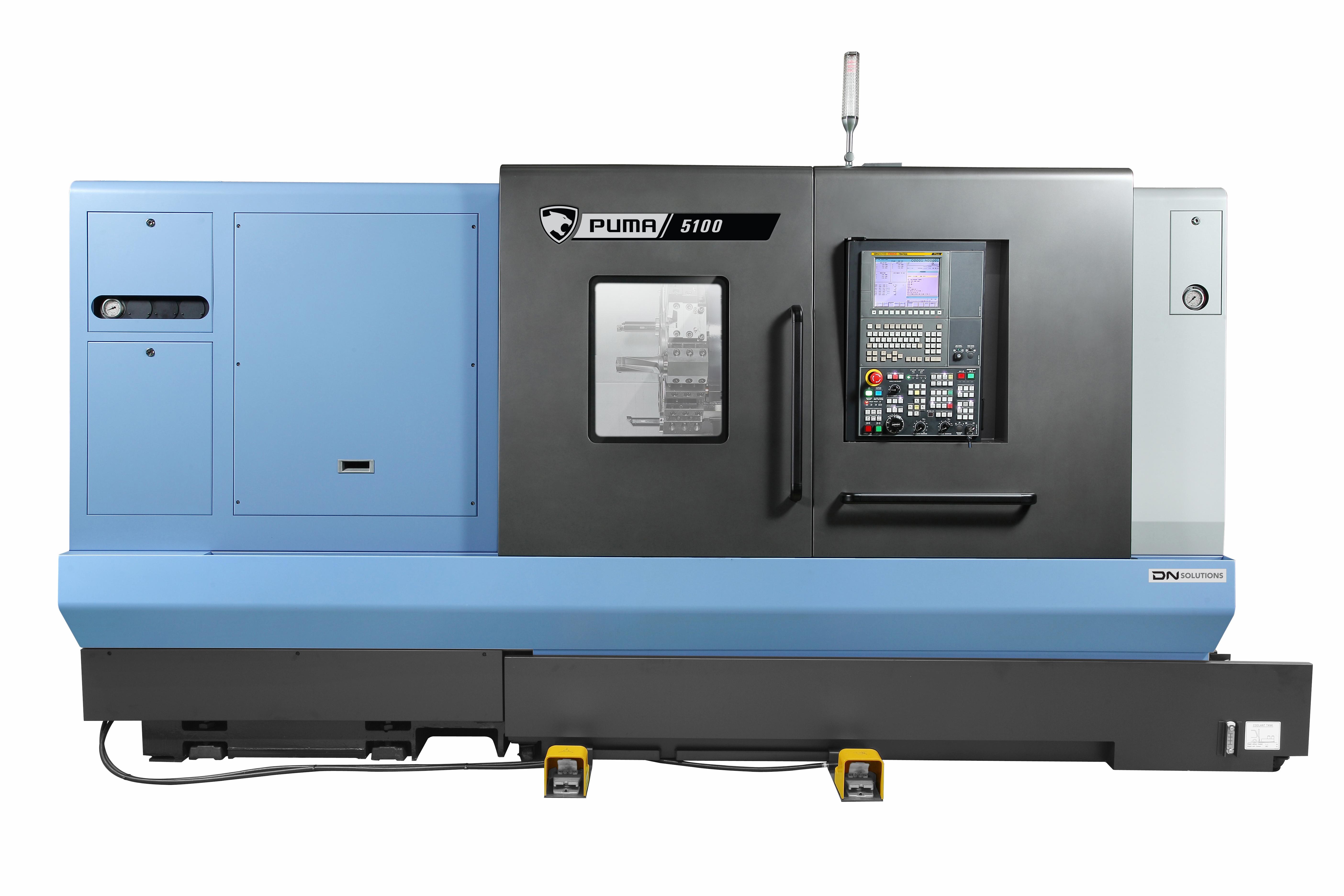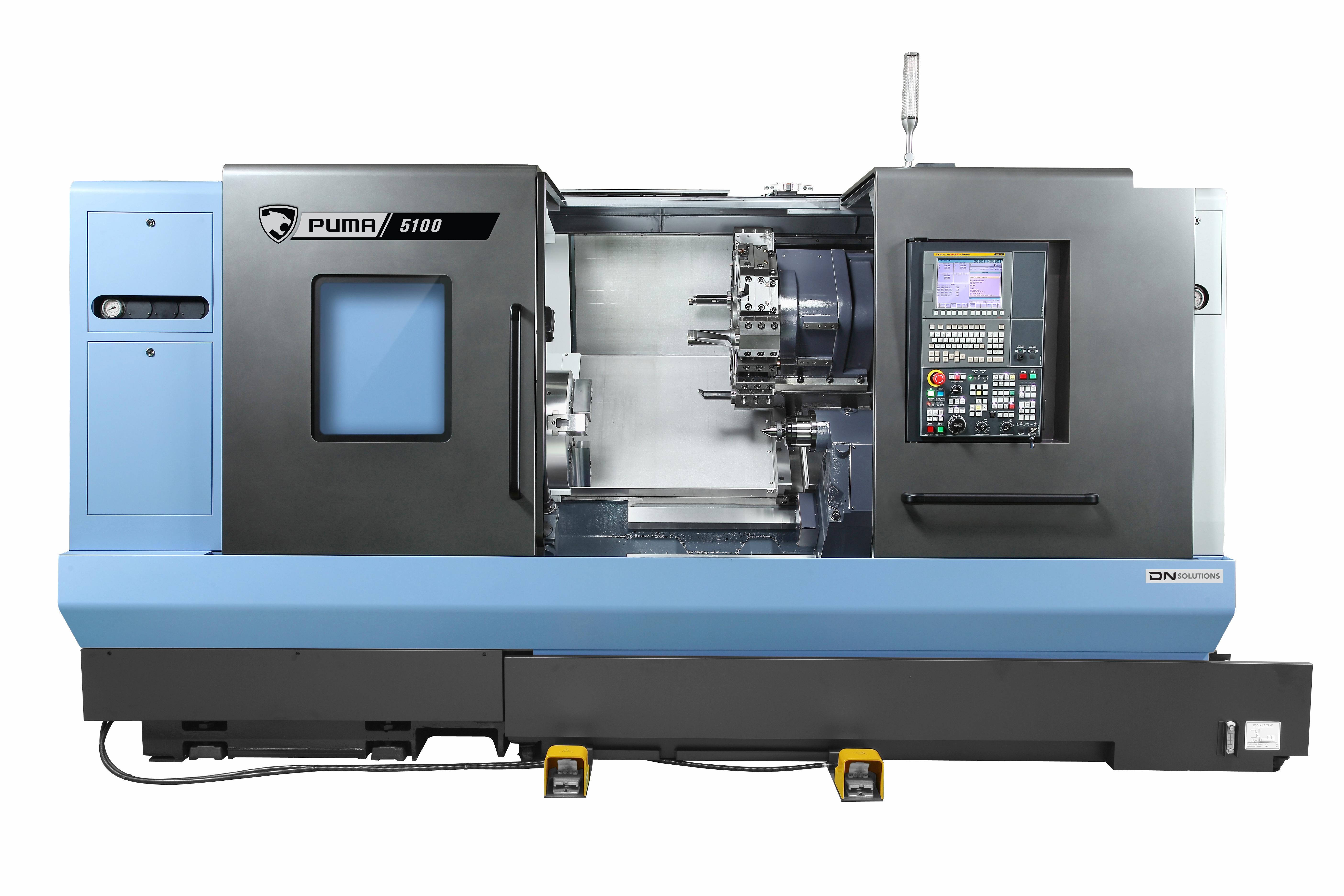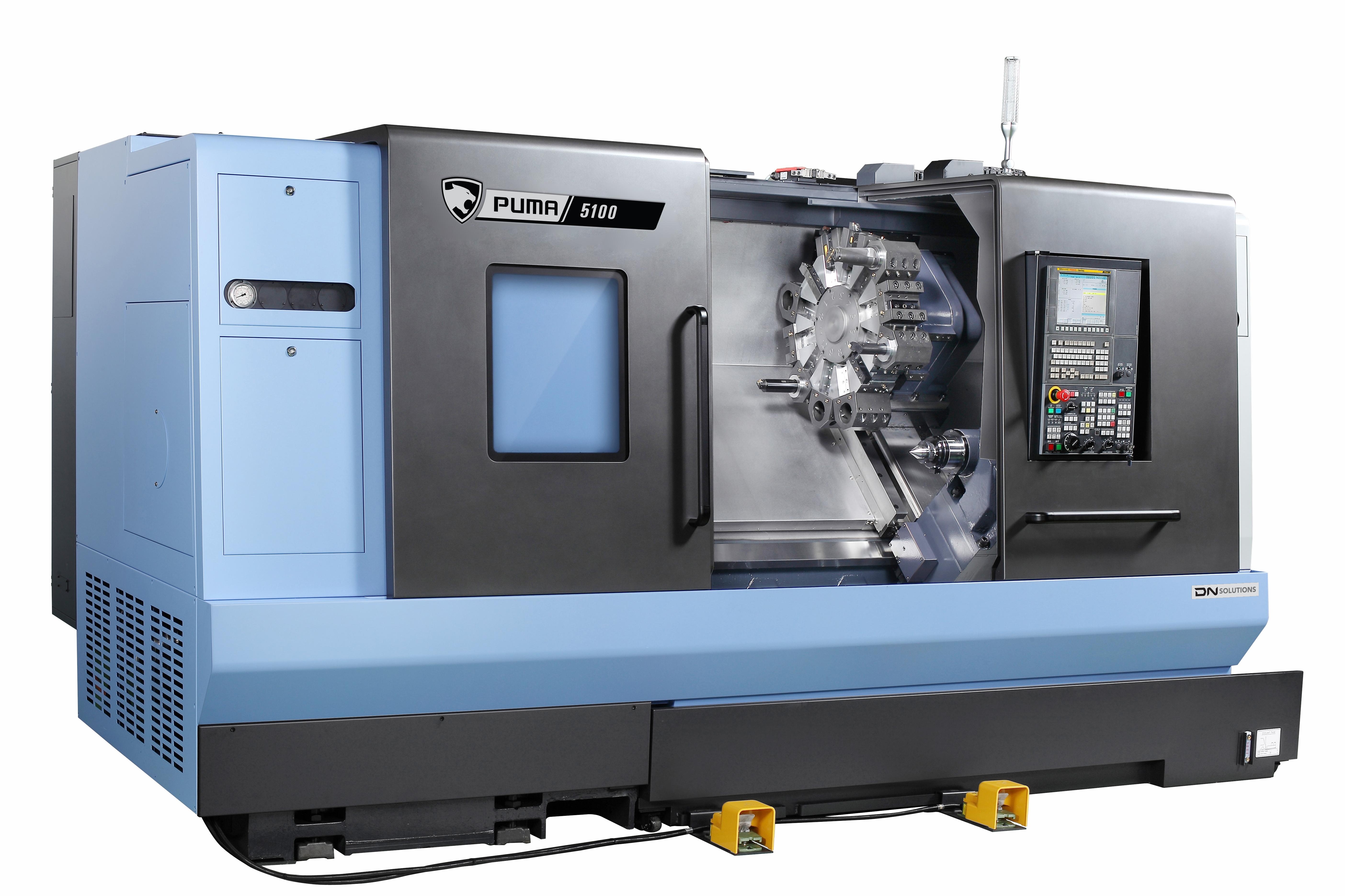 PUMA 4100/5100-seriens maskiner är horisontella svarvcentra designade för bearbetning av medelstora till stora arbetsstycken. De är kraftfulla maskiner som använder en tvåstegs växellåda, högmomentmotorer och har en styv boxgejdkonstruktion. Utvalda modeller kan bearbeta komplexa arbetsstycken genom att använda den valfria Y-axelfunktionen och DN Solutions gängningsfunktioner som är särskilt användbara för olja- och gasdelar, vilket gör PUMA 4100/5100-maskinerna till den ideala lösningen för många industrier och applikationer. |