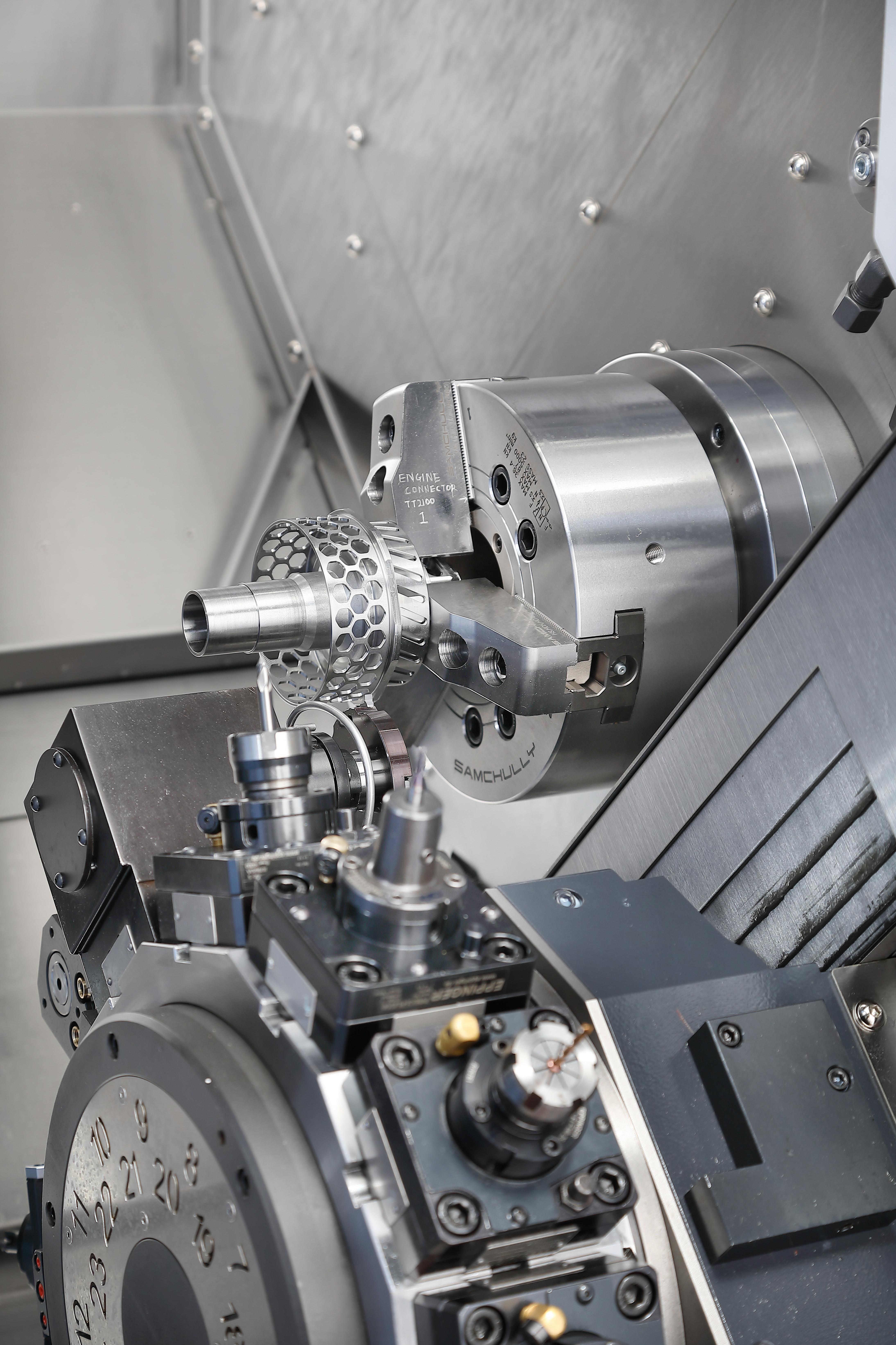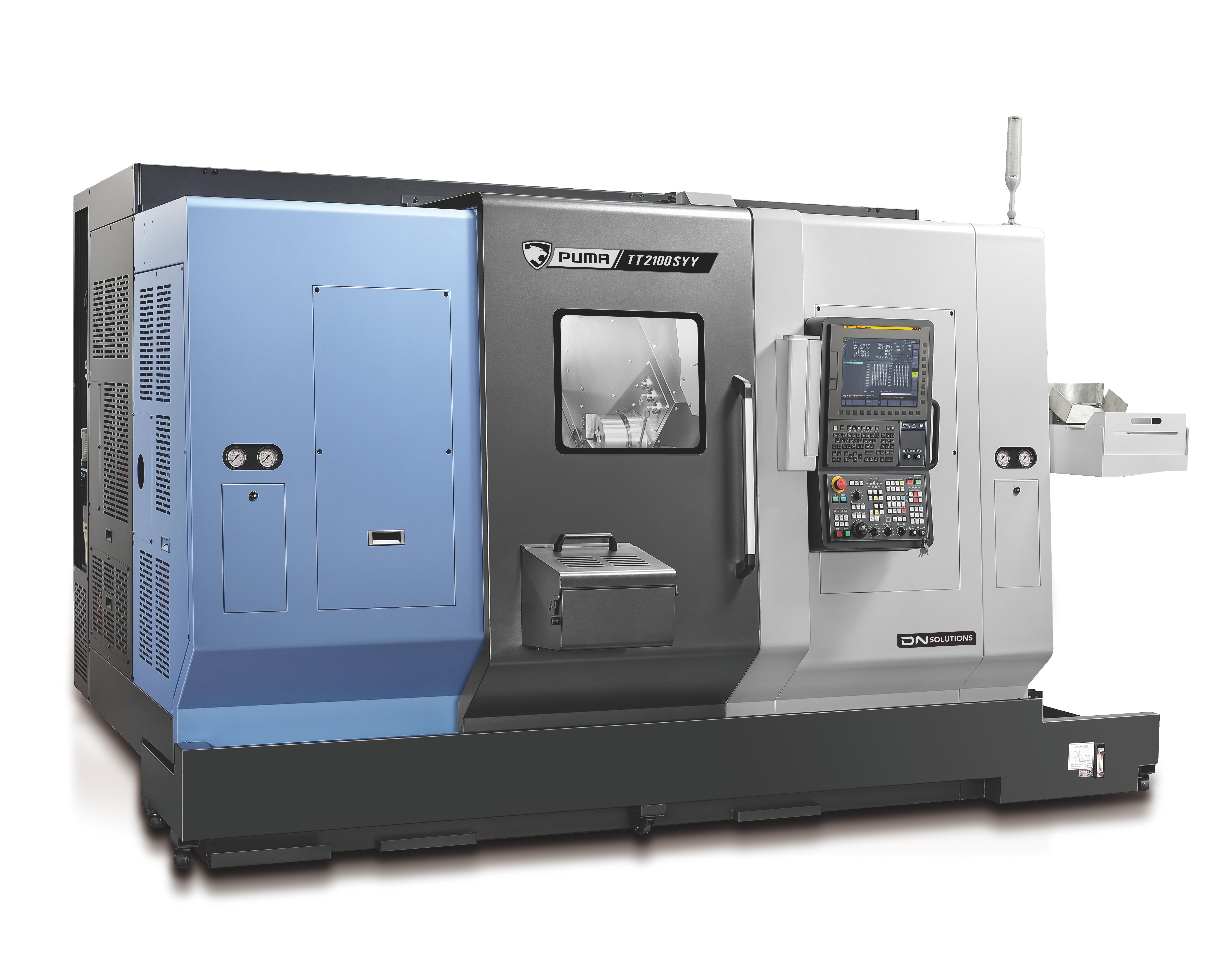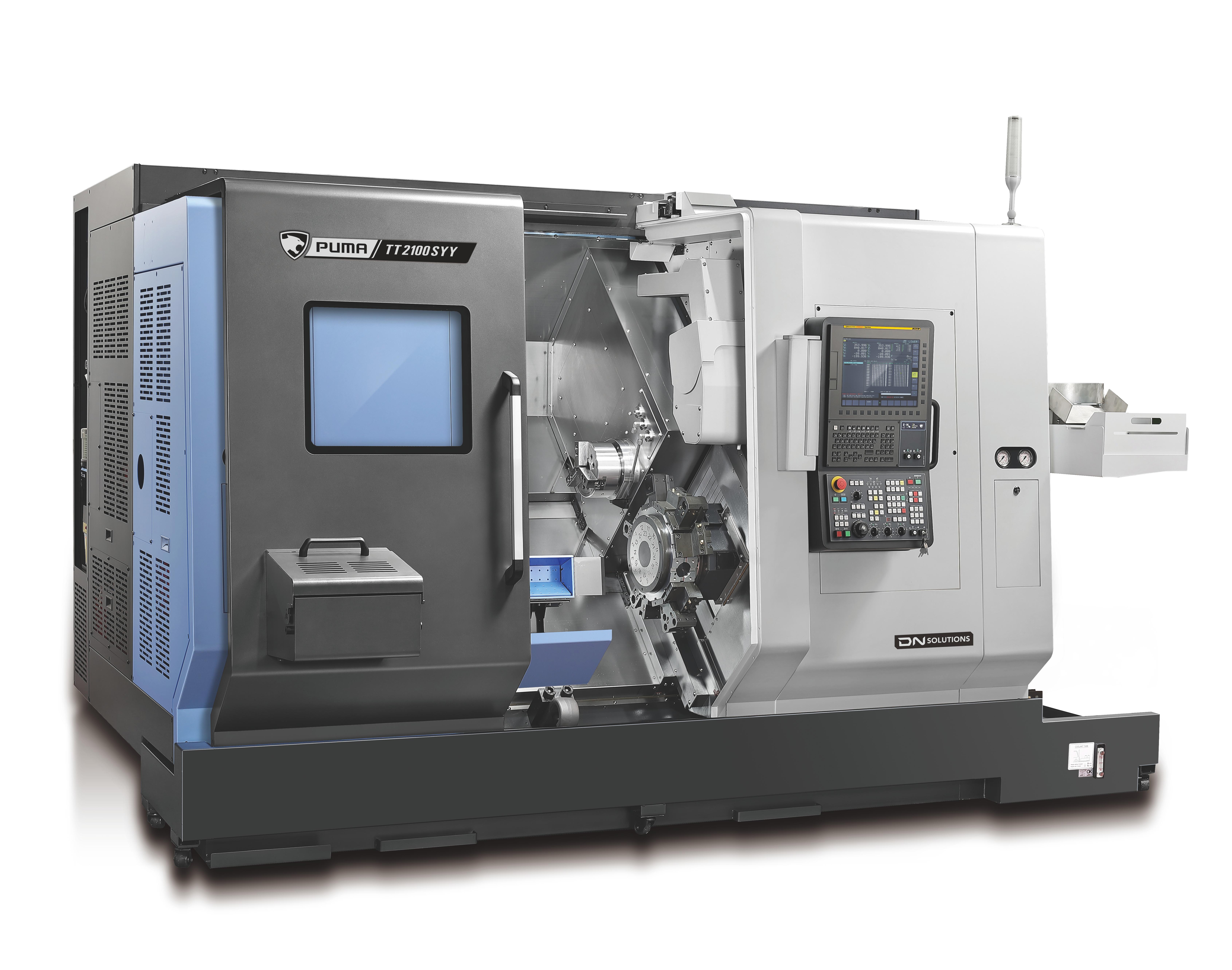 PUMA TT1300, TT1800, TT2100 och TT2500-serien är högproduktivt horisontella svarvcentra med stångkapaciteter från 42 mm till 81 mm. Dessa maskiner är utrustade med två motstående spindlar och övre/undre revolvrar med Y-axelkapacitet för samtidig två-yts bearbetning. Båda spindlarna har lika kraft och kapacitet, vilket möjliggör oberoende drift och automatisk arbetsstyckesutmatning, vilket avsevärt ökar produktiviteten. Favorit världen över, PUMA TT-serien är känd för sin bästa prestanda i klassen och tillförlitlighet, vilket gör den till en av DN Solutions toppsäljande produkter. |