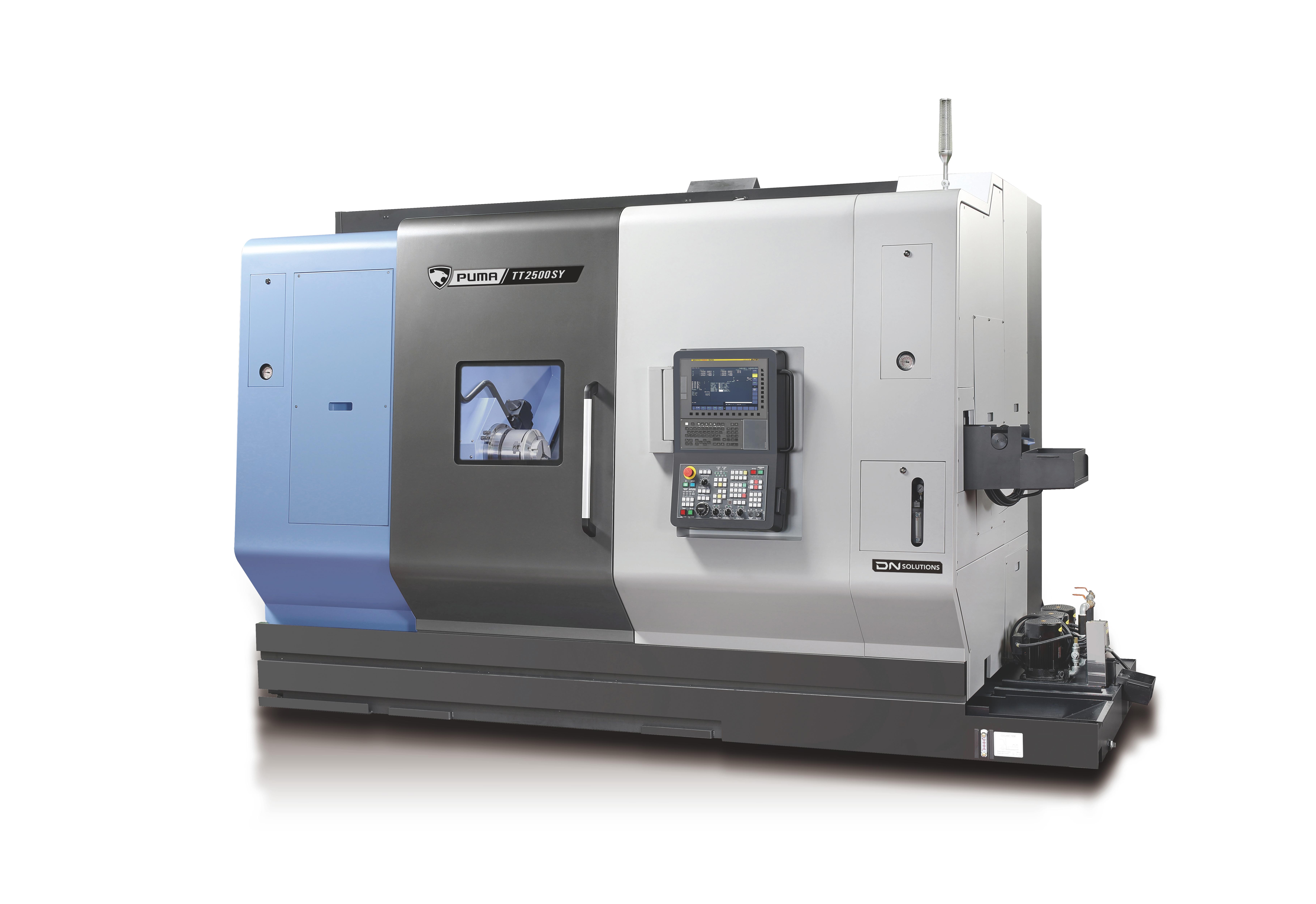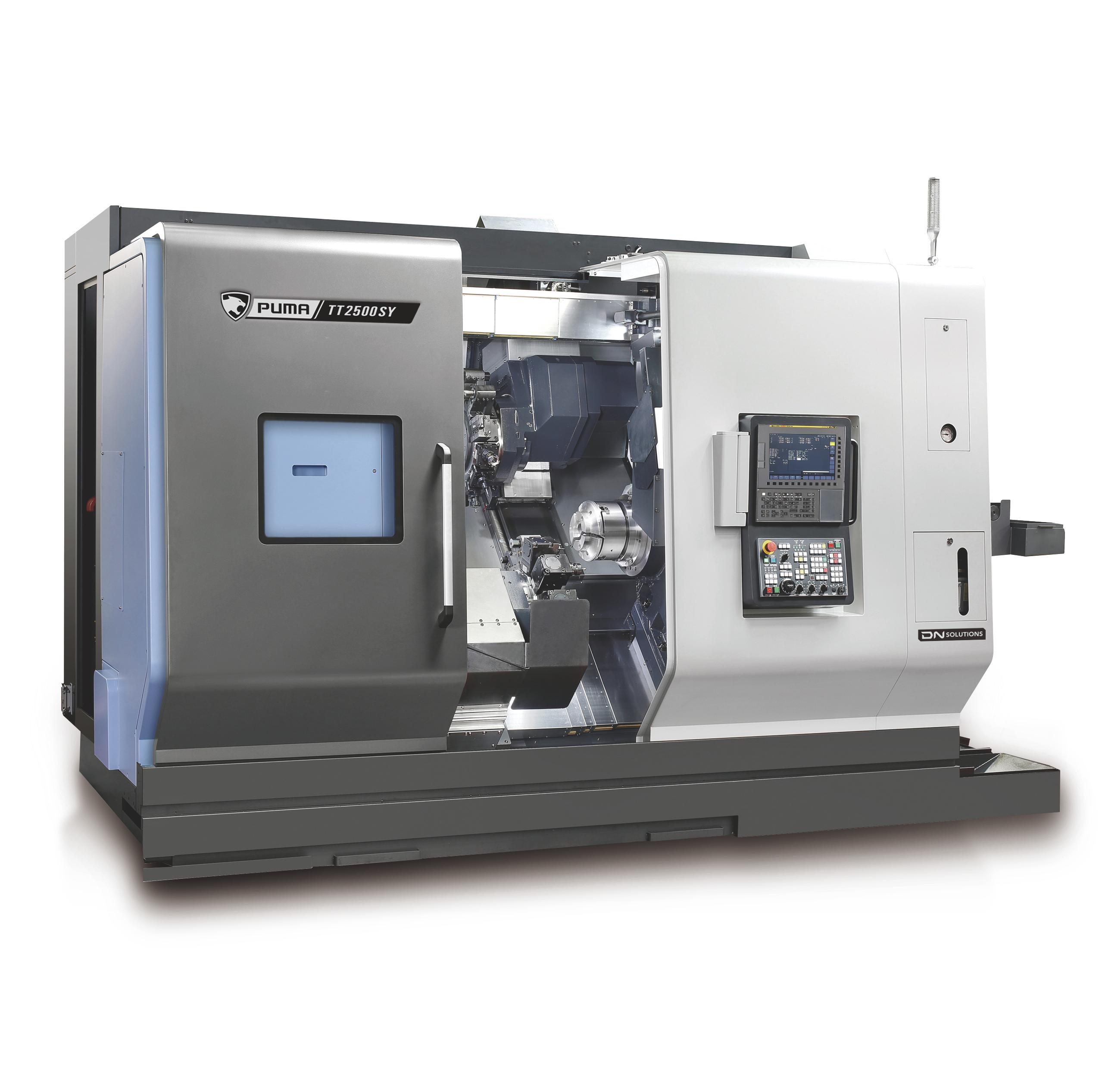 PUMA TT1300, TT1800, TT2100 och TT2500-serien är högproduktivt horisontella svarvcentra med stångkapaciteter från 42 mm till 81 mm. Dessa maskiner är utrustade med två motstående spindlar och övre/undre revolvrar med Y-axelkapacitet för samtidig två-yts bearbetning. Båda spindlarna har lika kraft och kapacitet, vilket möjliggör oberoende drift och automatisk arbetsstyckesutmatning, vilket avsevärt ökar produktiviteten. Favorit världen över, PUMA TT-serien är känd för sin bästa prestanda i klassen och tillförlitlighet, vilket gör den till en av DN Solutions toppsäljande produkter. |